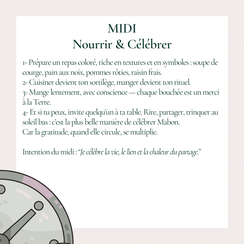 Mabon remet les pendules (et les cœurs) à l’heure : il nous invite à regarder nos récoltes, visibles et invisibles — nos progrès, nos leçons, nos liens.