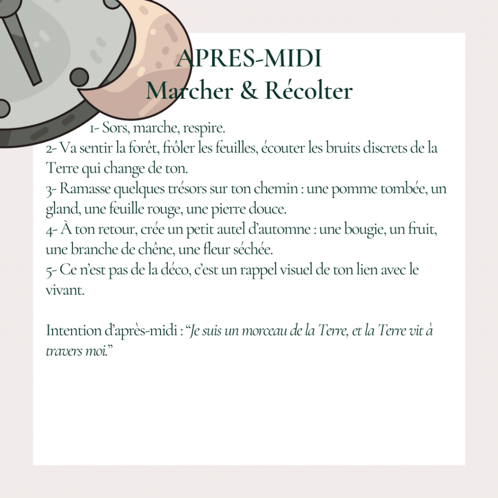 - Intention : se libérer des lourdeurs et entrer dans l’automne avec légèreté.