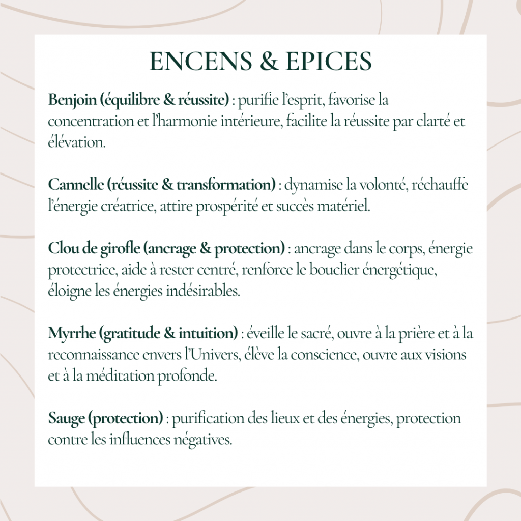 Ce rituel relie le cœur à la lignée, transformant la mémoire en bénédiction. Place la bougie sur ton autel pour rappeler que ton abondance d’aujourd’hui est née des racines d’hier.