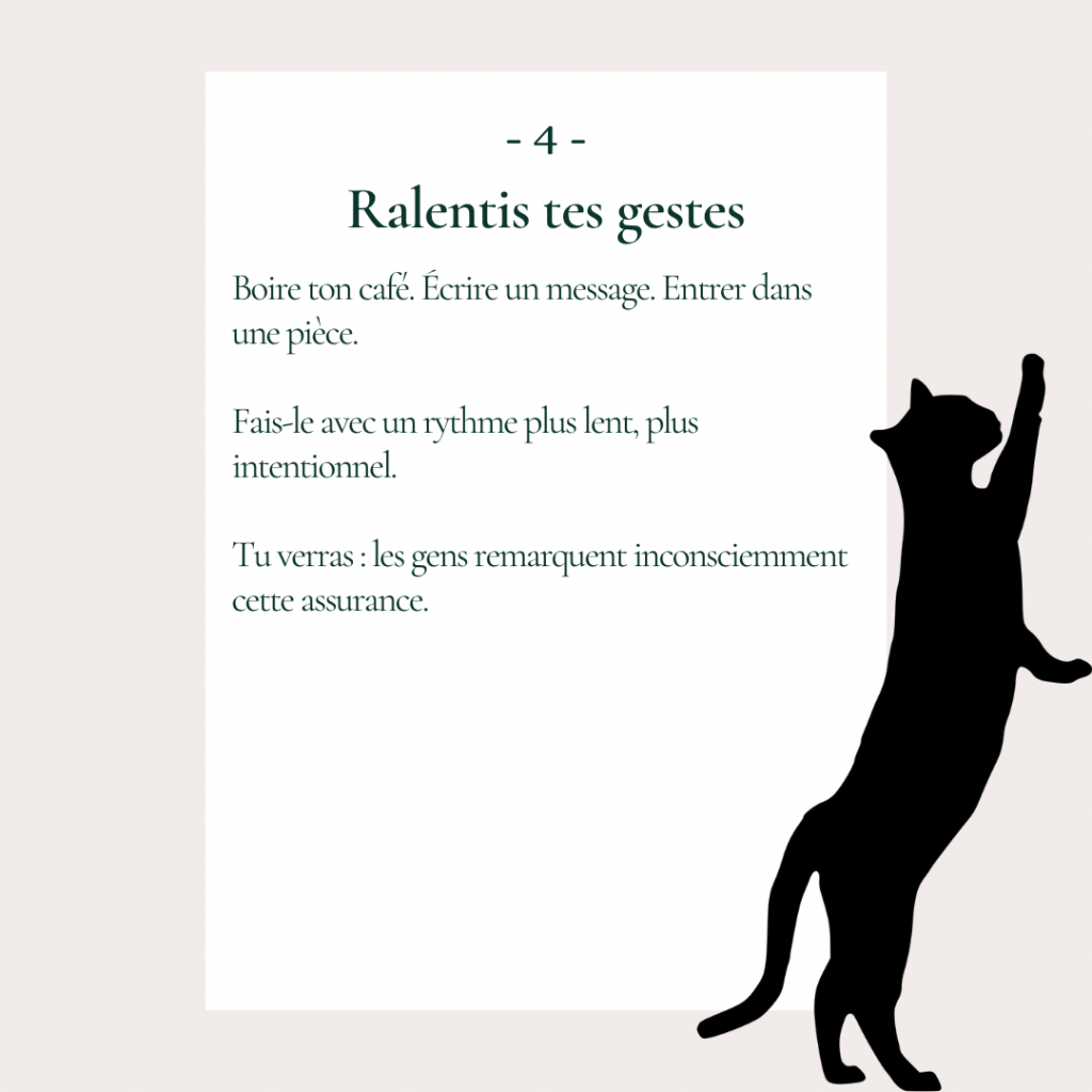 - Ton corps parle pour toi : une posture droite, un regard clair.